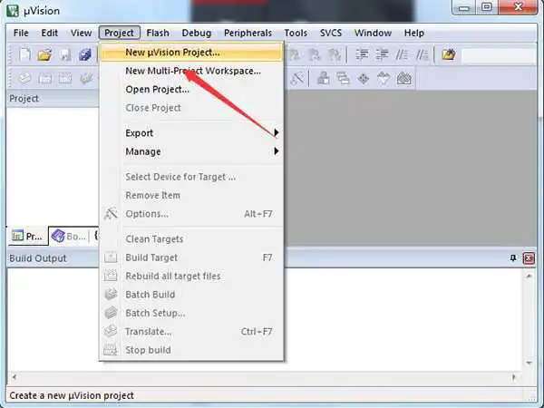 2、进入主界面后点击project再选择new uVision Project创建新工程。