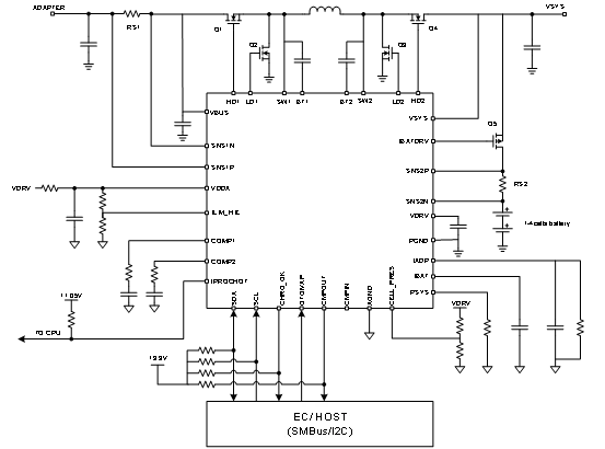 · 集成8通道的高精度10-bit ADC,可以检测系统功率/适配器电压/系统电压/电池电压/输入输出电流/电池充放电电流,方便主机实时监控充电器的工作状态。