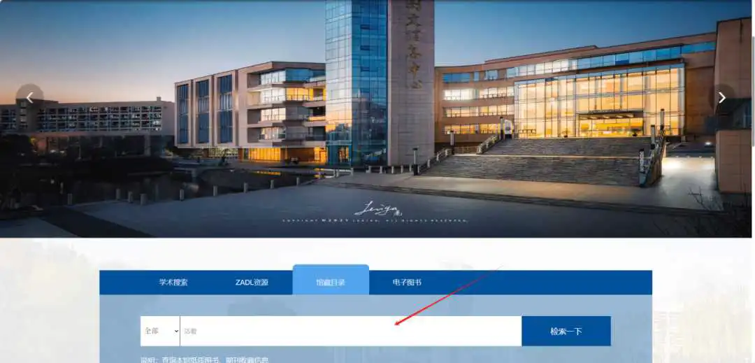 打开湖州职业技术学院图书馆官网https://lib.huvtc.edu.cn/,找到检索栏: