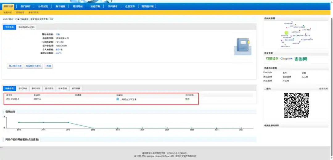 手机微信打开湖州职业技术学院图书馆公众号 > 纸书查询 > 藏书查询: