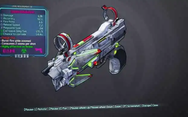 比如下图这把手枪的红字是Dodge this(让你丫躲),出自《黑客帝国》崔蒂尼的台词,她说完这句话就把一直躲子弹的特工毙了。而这把武器在《无主之地2》中的特殊效果是放出一个跟踪火箭跟踪敌人并爆炸。红字系统集合了趣味性和实用性,实在是装备系统中的超级亮点。