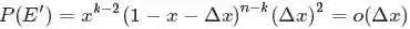 从上述的事件E、事件E‘中,可以看出,只要落在[x,x+Δx]内的数字超过一个,则对应的事件的概率就是 o(Δx)。于是乎有:
