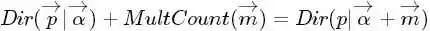 意味着,如果我们为多项分布的参数p选取的先验分布是Dirichlet分布,那么以p为参数的多项分布用贝叶斯估计得到的后验分布仍然服从Dirichlet分布。