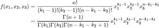 观察上述式子的最终结果,可以看出上面这个分布其实就是3维形式的 Dirichlet 分布