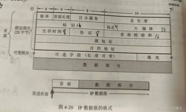 例如,首部长度为4时,首部长度为16,但是一般首部长度固定为20
