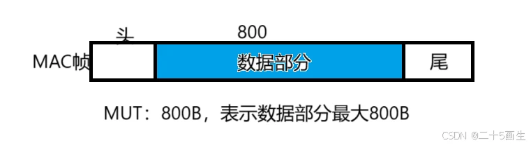 例如,MAC最大帧帧长为800,则最大数据部分为800