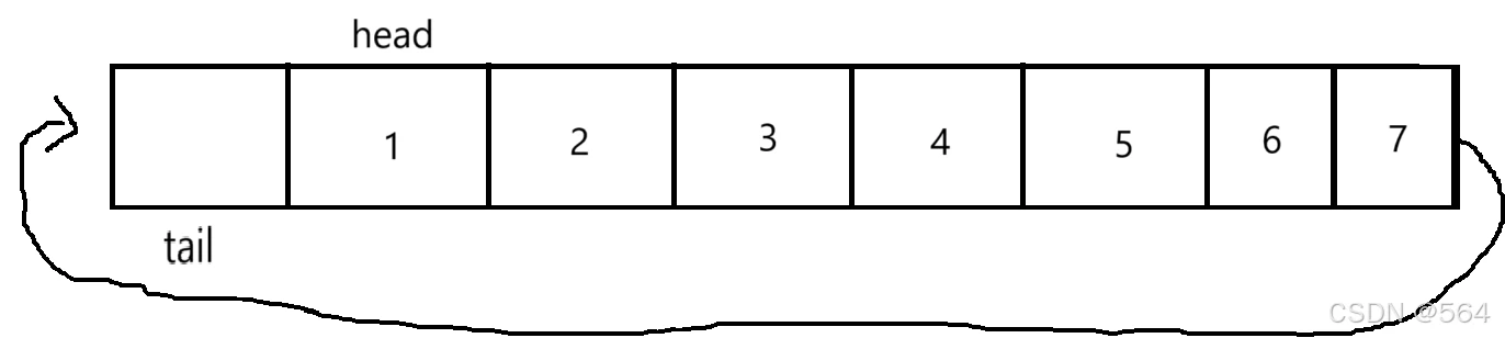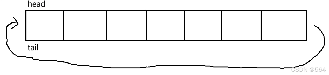 这里我们就可以知道,让tail+1以后,在对k+1取模(这里的k表示循环队列,即数组可存放的数据个数),如果等于head,那么此时就是满的。