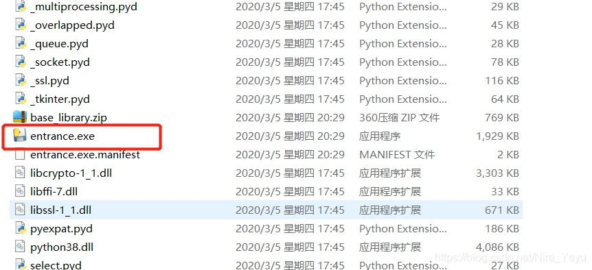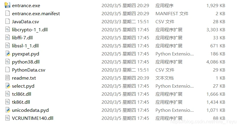 -F:表示希望将所有的程序全部打包在一起,生成的只有一个.exe文件,这样的文件集成度高,但是运行速度慢;如果不写-F,生成的还有一堆.dll文件,这样的程序里文件很多,但是运行速度比较快,这也是我们平时使用的程序的样式(如图)(注意:大写!)