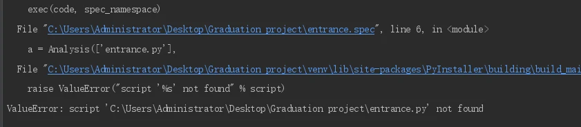 pyinstaller找文件的方法是看你建立的那个工程文件夹里有没有你写进去的文件,而不是看子文件夹里有没有。如果您是在子文件夹中写程序,可以把你写的所有程序都拷贝到工程文件夹中。