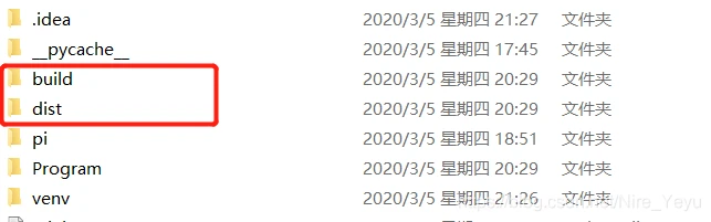 没看见就对了,因为.exe文件根本不在工程文件夹下面。运行pyinstaller -w -F XXX.py指令后,会生成两个文件夹:一个叫build,另一个叫dist。