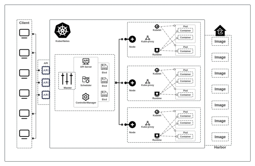 该组件作为管理节点中的核心,主要提供了一系列对外API接口为用户与K8S中组件通信,此外该API还可用于创建、修改、删除和查询各种资源对象。该接口还提供认证与授权功能,为接入集群的提供了安全屏障。