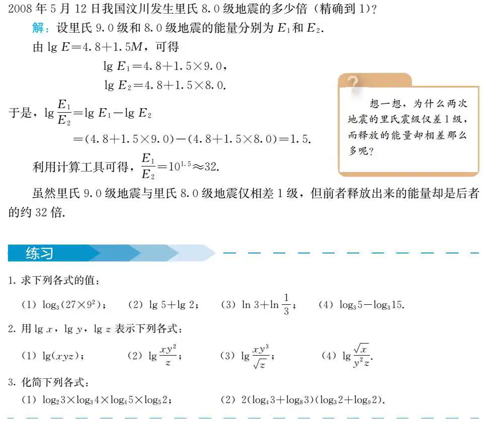(3)学生会用对数的运算性质解决问题,能进行对数间的化简、运算,会用换底公式将一般对数转化成自然对数或常用对数.
