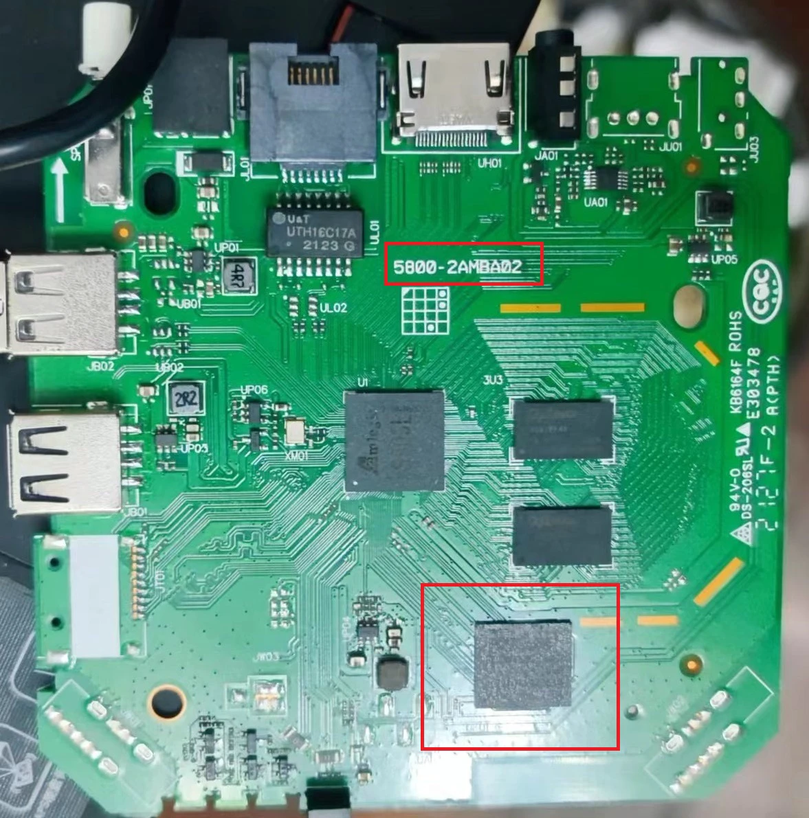 注意:上面红框中这一串数字 5800-2AMBA02,下面红框中就是bootloader所在的闪存卡,后面短接的就是这块闪存卡。
