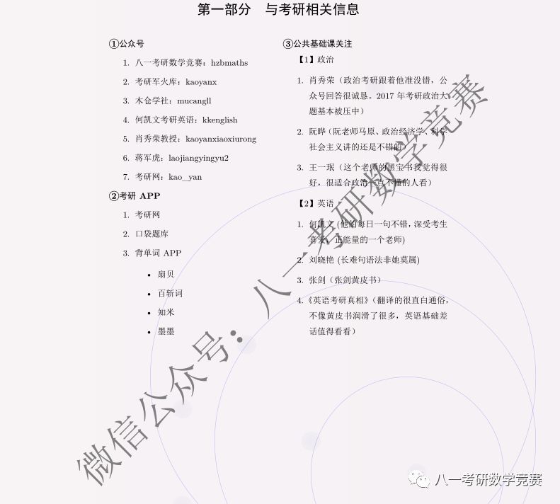 \usepackage{draftwatermark}\SetWatermarkText{\shortstack{微信公众号:八一考研数学竞赛}}\SetWatermarkLightness{0.50}%设置水印亮度\SetWatermarkScale{0.3}%设置水印大小