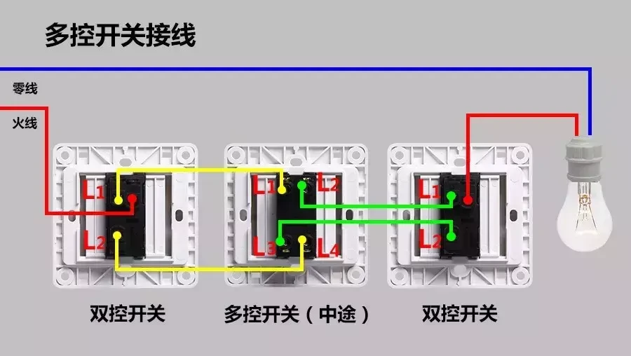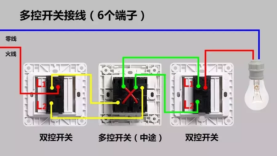 多控开关接线如上,对应数字表示连接即可。