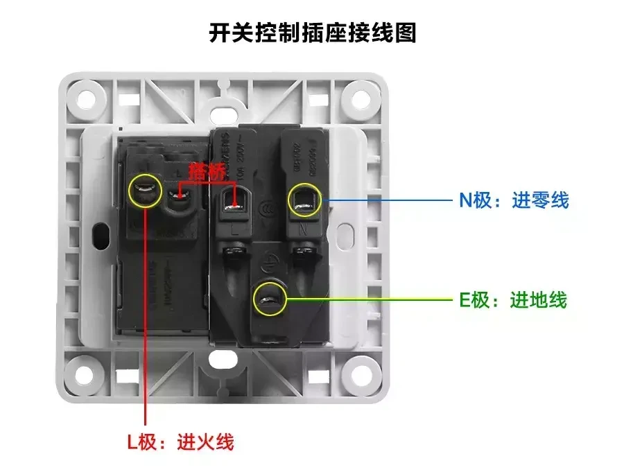 作为插座用只需要连接三根线。火线进L1,零线接N,地线接地(如上图)。如果开关控制灯。那么L接灯,L1接火线,零线接N,地线接地(下图1)。