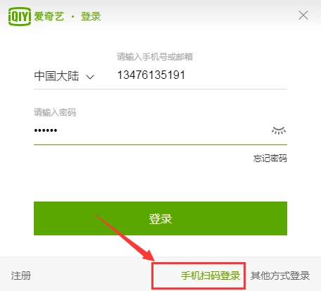 打开手机上的爱奇艺app然后我们登录手机端的爱奇艺,在登录页面还能看到有一个扫描的标识,点击它就可以用手机扫描二维码了,如下图:
