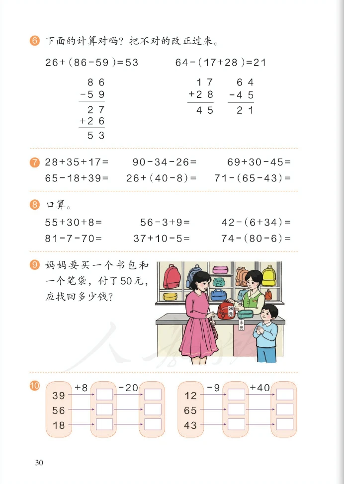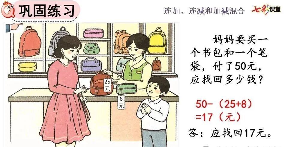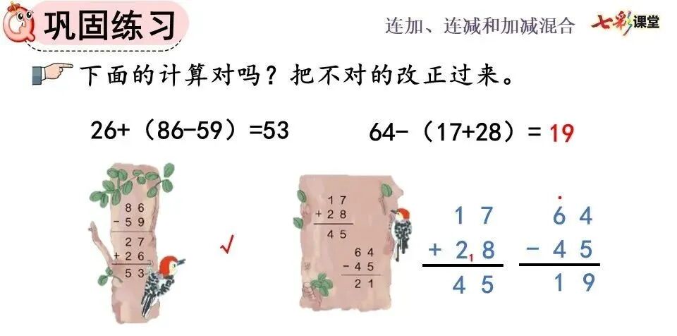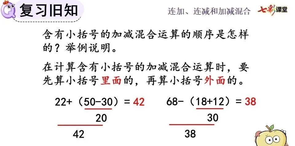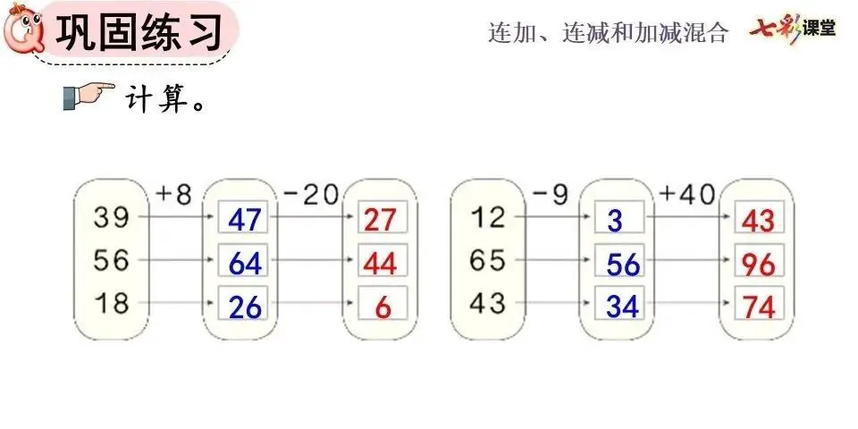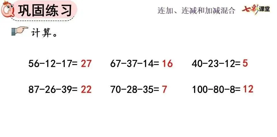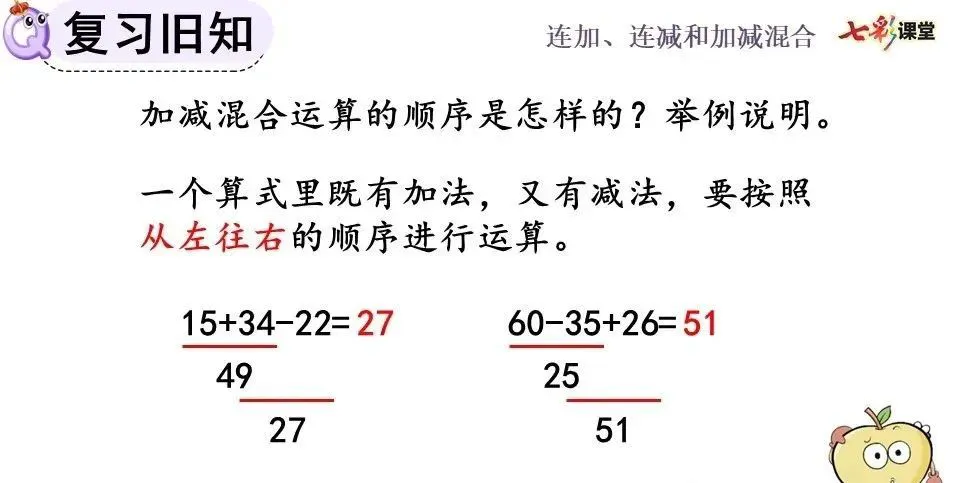 加、减混合算式,其运算顺序、竖式写法都与连加、连减相同。