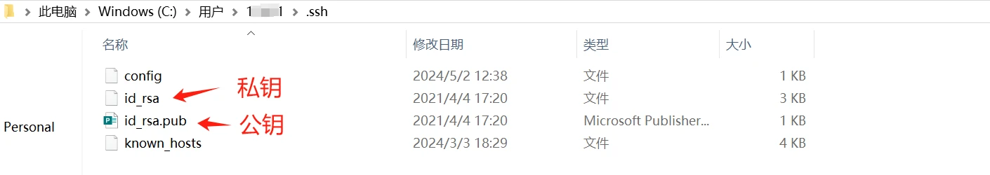 这样就生成了公钥和密钥,可以在本地路径 C:Users用户名.ssh 检查!