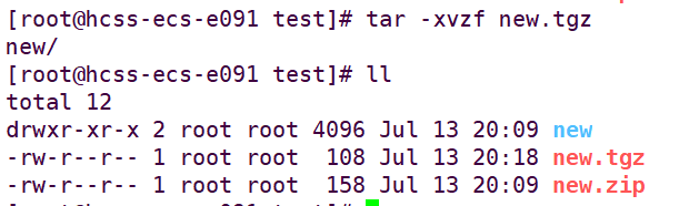 这里我们先把new删了,然后解压之后又多了一个new,说明解压成功了,如果要解压到指定目录的话,可以在后面添加路径即可。