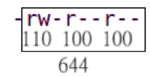 用八进制进行修改,644转换为二进制刚好就是110 100 100刚好能和上面对上。