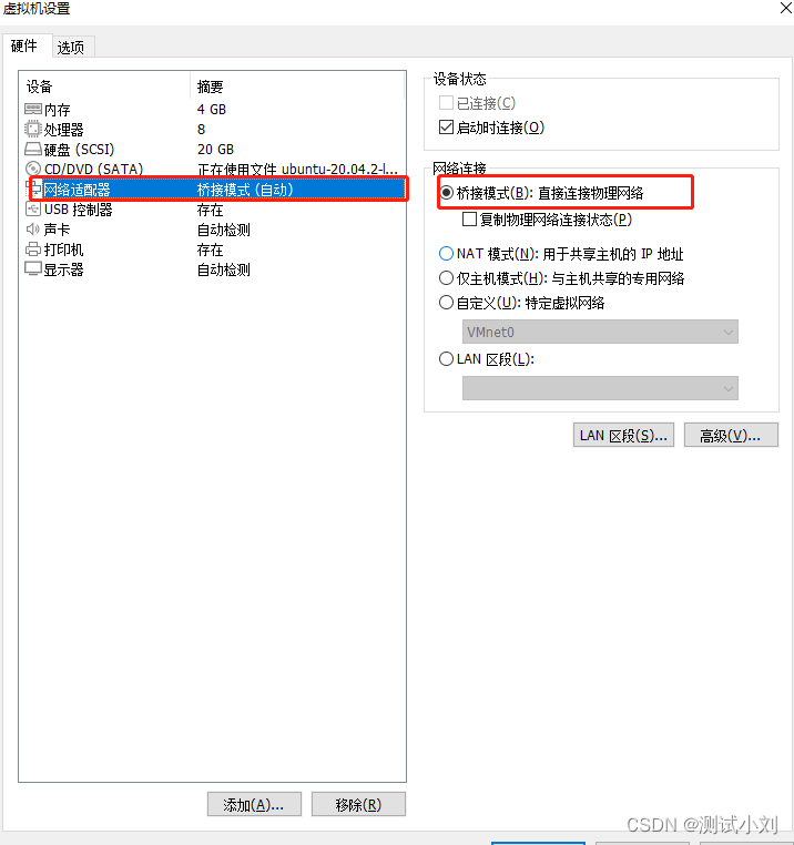 二、在网络适配器中改成桥接模式,然后重启虚拟机,ok