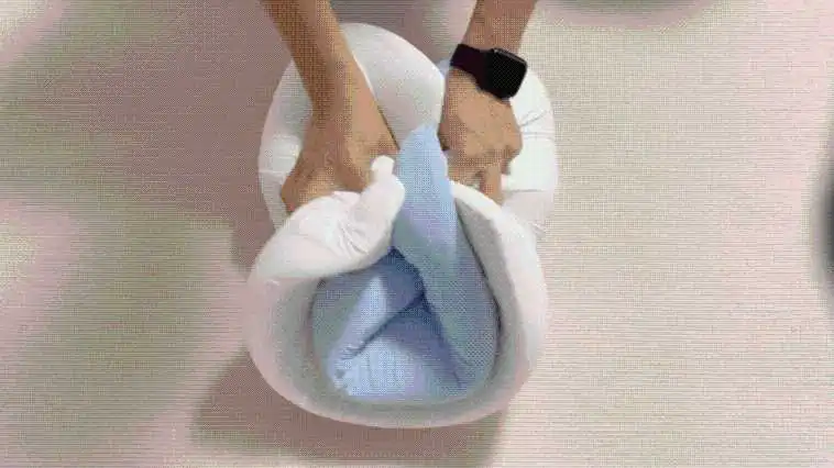 给大家看一下这款0压枕的慢回弹效果,将枕芯用力卷起来随后放开,就会慢慢恢复原状,缓冲效果特别好!