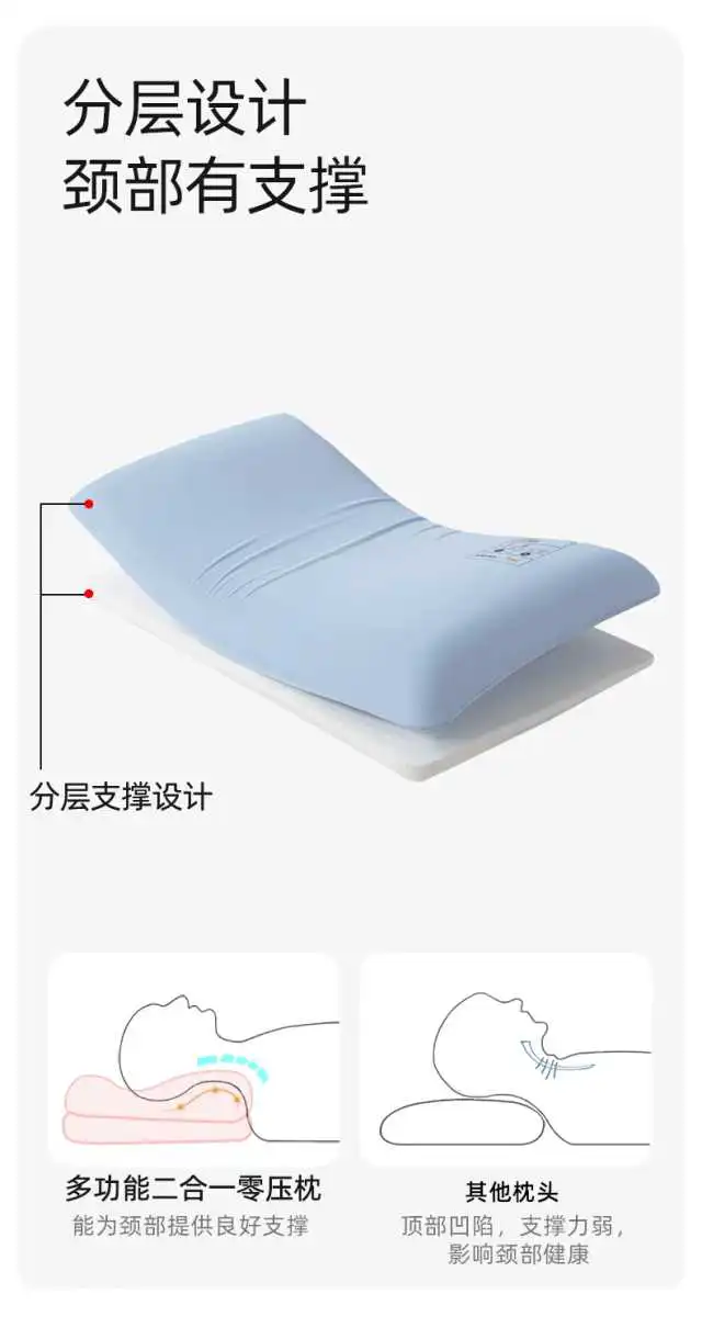 而这款多功能二合一0压枕,通过一个创新设计——分层支撑设计,同时解决了这两个问题。