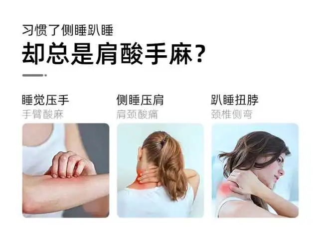 传统枕头,通常都是根据仰睡设计的,侧睡时由于受力点不一样,不是过高就是过低,很难找到合适的高度,睡久了,或导致颈椎酸痛,或导致肩膀酸麻!