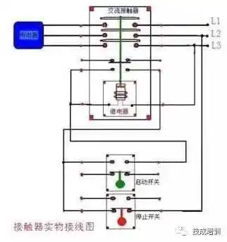 控制电路:从L1引出一根线接停止按钮(停止按钮是常闭的,启动按钮是常开的)从停止按钮出来接启动按钮一端和接触器辅助触点的一端,然后从启动按钮的另一端接辅助触点的另一端(这部分也就是自锁),从这一端出来的线接线圈A1,线圈A2出线接L2或L3。