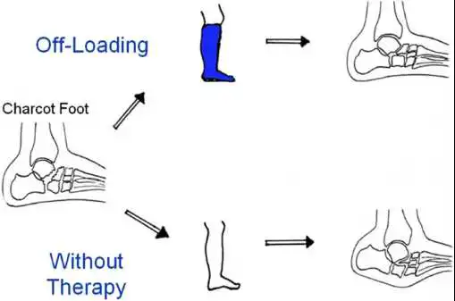 全接触石膏免负重使患者渡过疾病活动期,直到 Charcot足的活动体征显着减少或消失