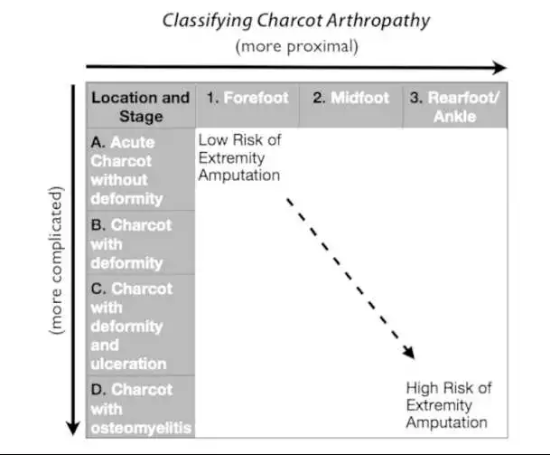 2. Trieb K. The Charcot foot: pathophysiology, diagnosis and classification. Bone Joint J. 2016 Sep;98-B(9):1155-9. doi: 10.1302/0301-620X.98B9.37038.
