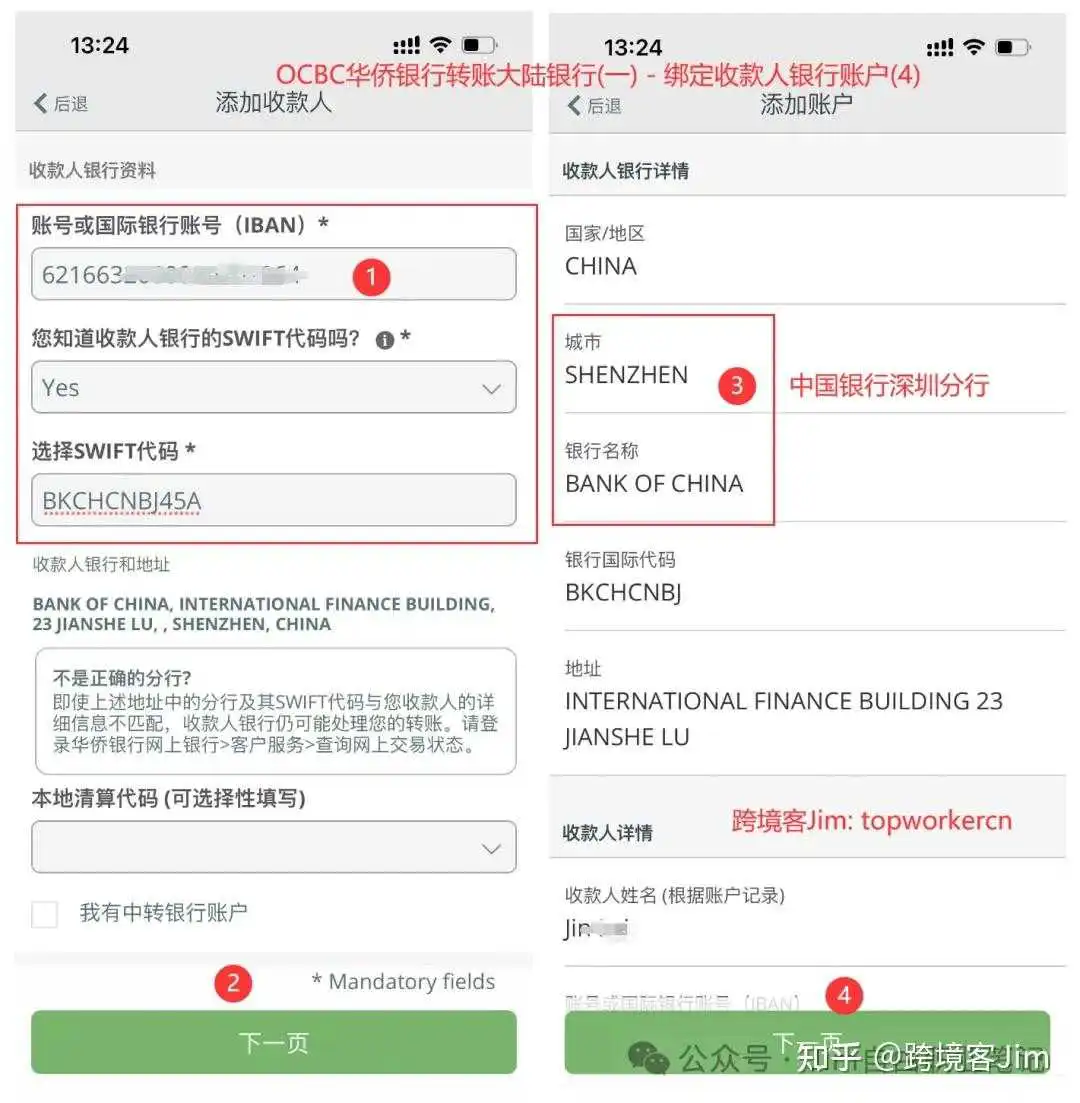 - ①新加坡OCB华侨银行转账到国内银行的时候需要先绑定收款人,即先绑定国内的银行账户信息,笔者是绑定了同名的大陆境内中国银行账户;