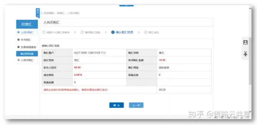 只需要几个步骤,我们就完成了购汇,耗时大约5分钟。