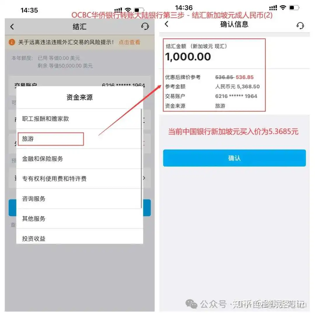 注意:新加坡元结汇会占用中国公民每年5万美元等值外汇额度。