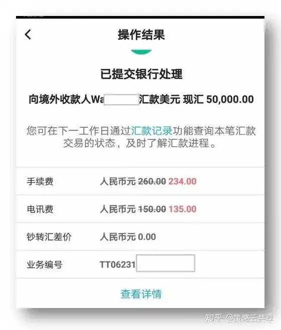 支付宝国际汇款:全部手续费=境内银行手续费+境外银行手续费。