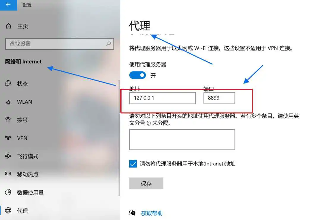 然后电脑上需要设置一下网络代理,地址:127.0.0.1,端口:8899,打开使用即可,不用的使用再关掉。