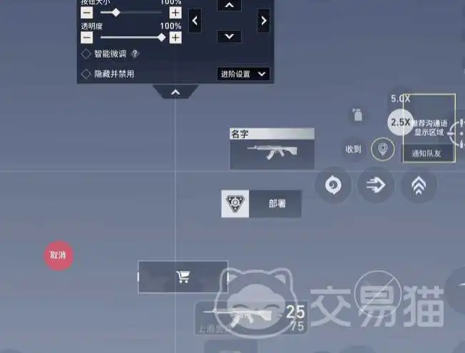 在该状态下就代表着可以调整键位了,这个时候大家需要先调整射击和移动,需要讲射击和移动键放在自己使用最多的手指位置,之后将其放大之后固定,固定后需要将开镜键放在射击键的上方。