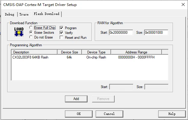 LoaderType :必须是12.5.4.1 Attribute values - LoaderType中列出的类型之一,目前只有FLASH_ALGO_TYPE_OPEN一个类型,而*.flm是支持这个类型的