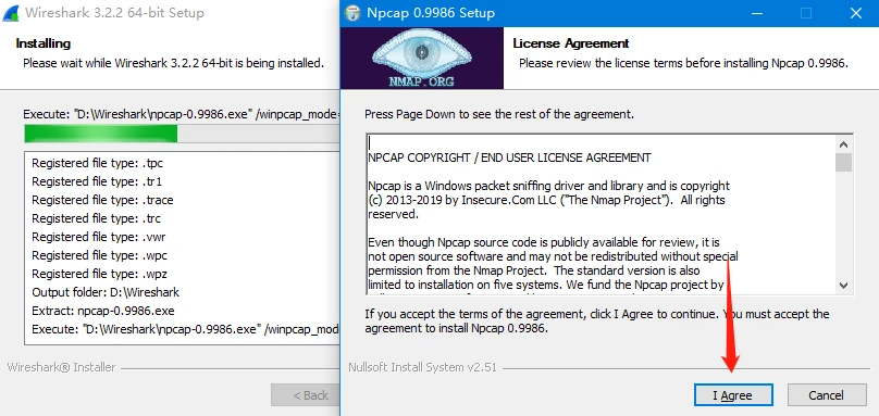 (9)安装过程中出现“Npcap0.9986 Setup”界面,默认点击“I agree”即可,详见图17;