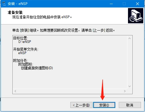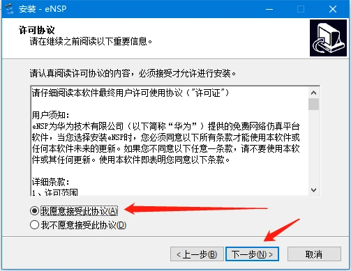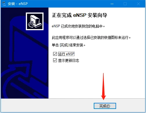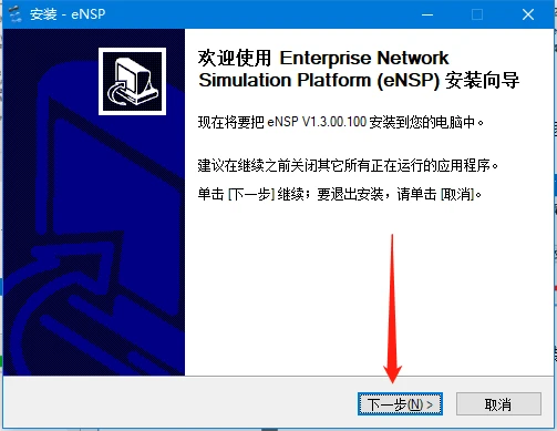 4.在前三个软件安装成功的基础上,最后安装eNSP,操作步骤如下所示: