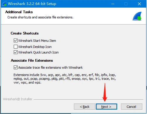 (1)在文件夹中双击“Wireshark-win64-3.2.2”开始安装软件,详见图9;