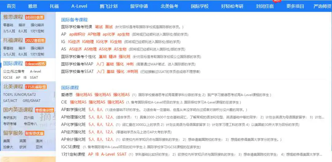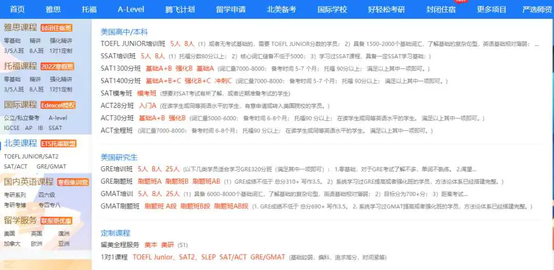 雅思/托福/GRE/GMAT/SAT/ACT/AP课程/A-Level课程/国际学校备考课程//留学预备课程