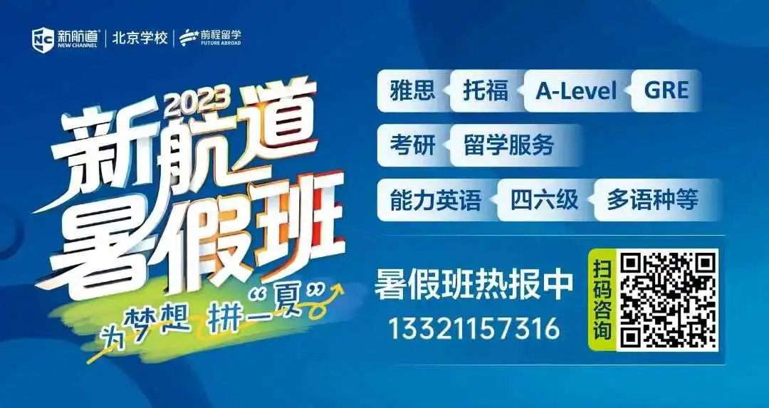 新航道北京学校开设:雅思/托福班课、国际学校择校备考、北美硕博课程、留学规划服务、留学背景提升等项目,帮助您语言学习、留学规划两不误!