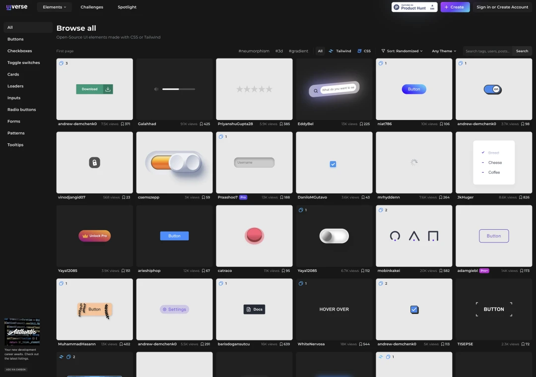 这是一个开源 Tailwind UI 组件库网站,特点是,每一个组件都有多种不同的样式,每一种都支持在不同的宽度下看效果变化。
