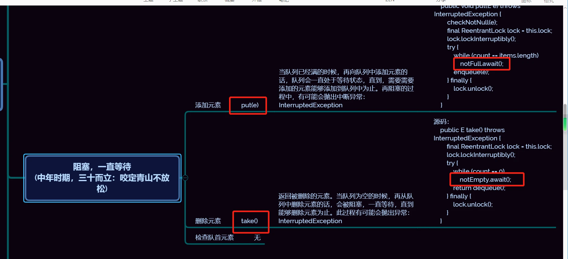 中年时期,三十而立,咬定青山不放松,对应的是第三组API:阻塞,一直等待;
