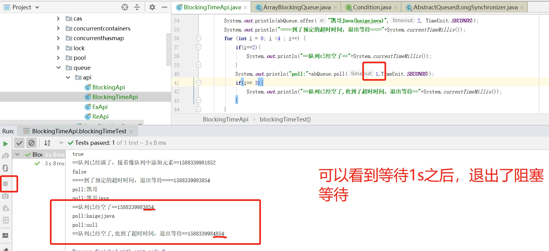 如果第三组API一直阻塞等待着,你受不了的话,并发大师还为我们准备了第四组API,带有超时时间的