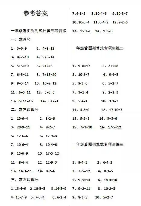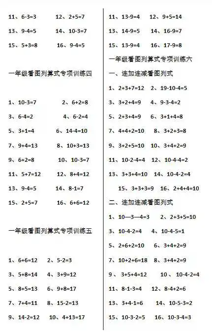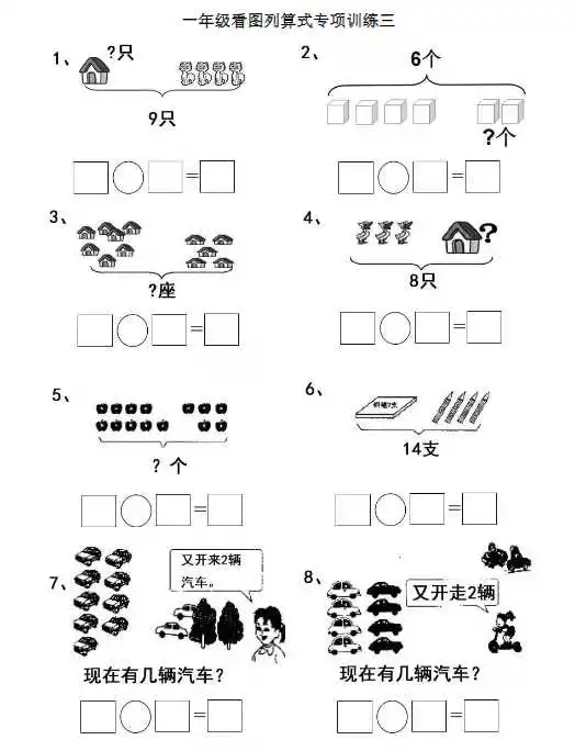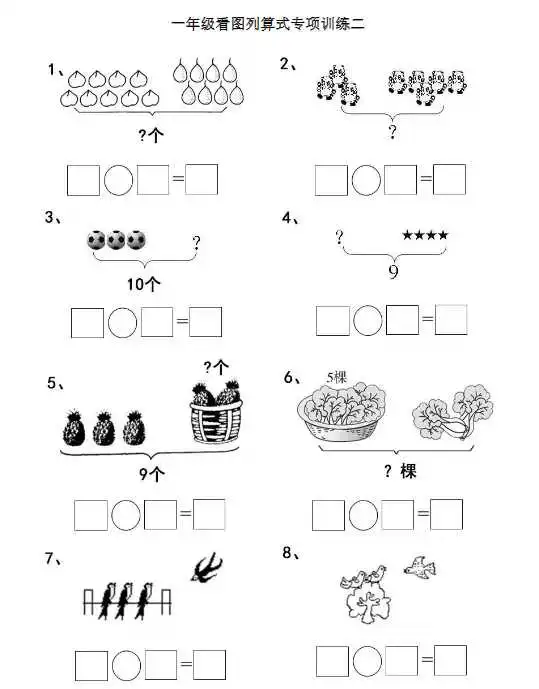 最近,后台不少家长学生询问学习资料,今天王老师准备了一年级上册数学看图列算式,孩子学习必备哦!