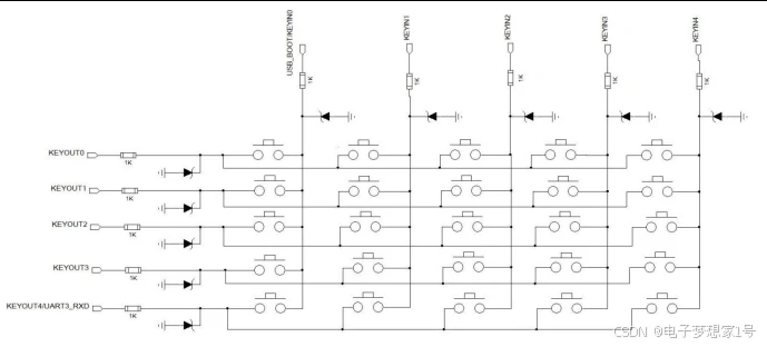 - 键盘走线串联 1K 电阻来做ESD 防护。