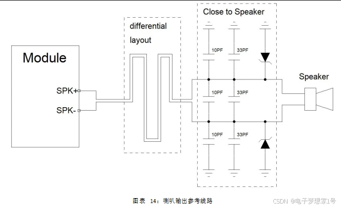 - 10pF 和 33pF 的滤波电容需要靠近 speaker 放置;